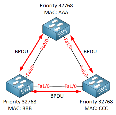 참고: STP는 OSPF와 달리 “단순(dumb)“합니다. 각 스위치는 자신이 수신한 BPDU 정보만 알 뿐, 전체 네트워크 토폴로지를 알지 못합니다. OSPF처럼 전체 토폴로지 데이터베이스를 구축하지 않습니다.