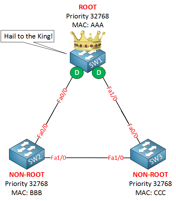 • 우선순위가 같으면 가장 낮은 MAC 주소를 가진 스위치가 선출