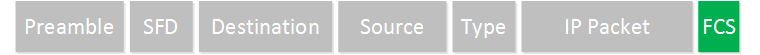 FCS: 이더넷 프레임 끝에 붙는 4바이트 오류 검출 필드. 송신 측이 프레임 내용(Destination MAC ~ Data)을 기반으로 CRC-32 값을 계산해서 프레임 끝에 붙임