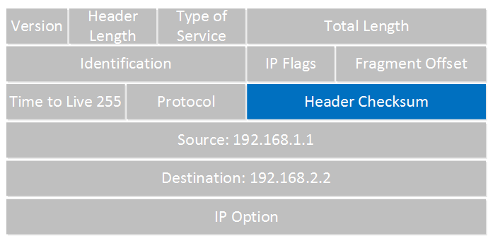 라우터는 이제 IP 패킷을 살펴보며, 가장 먼저 하는 일은 헤더 체크섬(Header Checksum)이 올바른지 확인하는 것입니다: