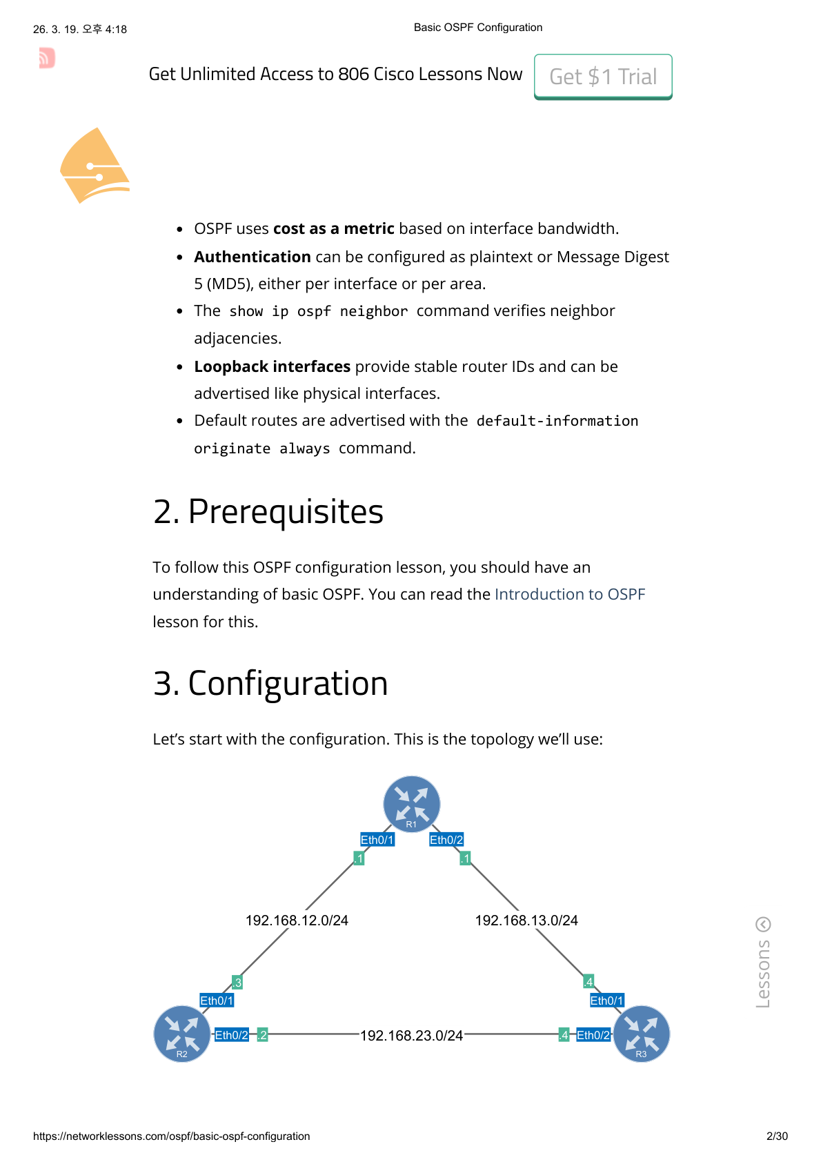 이 OSPF 설정 강의를 따라하려면 OSPF의 기본 개념을 이해하고 있어야 합니다. Introduction to OSPF 강의를 먼저 읽어보세요.